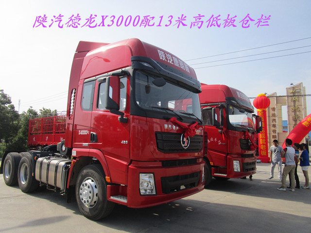 陜汽德龍X3000高端牽引車“全面領(lǐng)先成就老板,產(chǎn)品突破服務(wù)超越!陜汽德龍X3000配歐陽華俊13米高低板倉欄式半掛車,在路上行駛,猶如一道亮麗的風景線,吸引了無數(shù)的愛車卡友們。