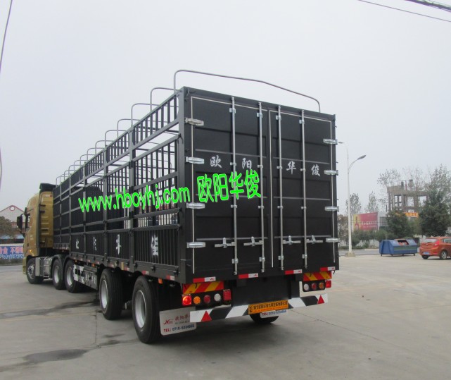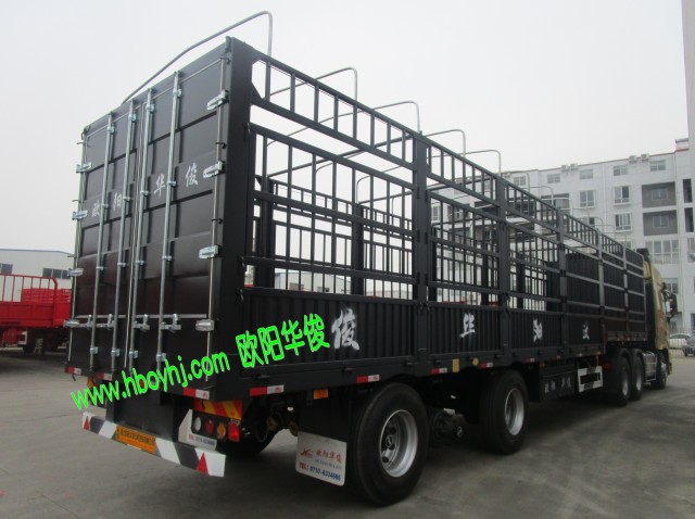 下面分享一下魏總的13米亮灰色高低板蒼柵式半掛車的圖片: