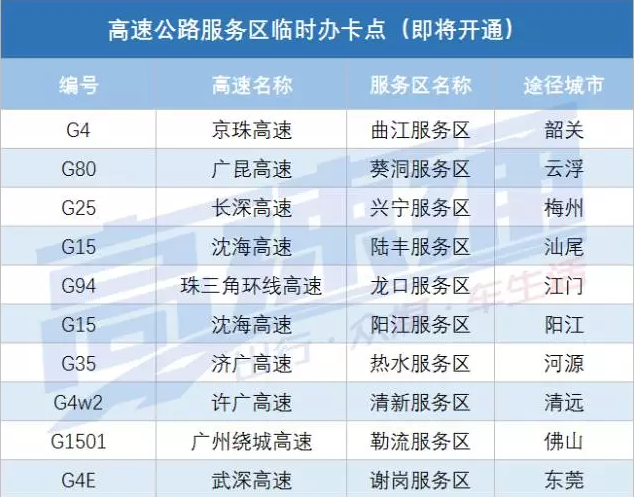 10對服務區將設臨時辦卡點↓↓↓