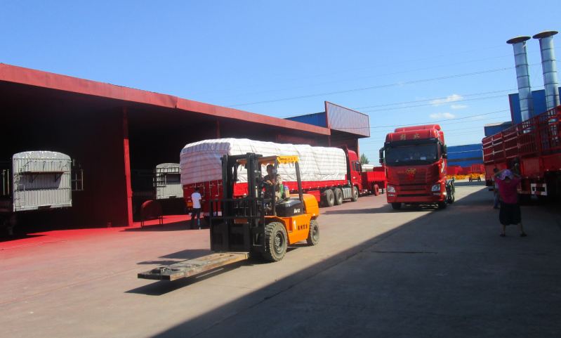 開叉車的師傅們冒著高溫酷暑轉運各種半掛車廂