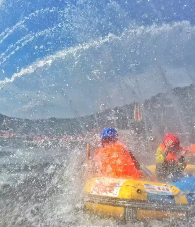 水道的落差很大,連續(xù)多處水坡,坡陡水急,皮艇俯沖而下,激起層層浪花,不禁讓人心跳加速,冰涼舒爽的感覺又讓人大呼過癮,更激起了大家激流勇進(jìn)的欲望。刺激的漂流讓大家在河道中你追我趕,飛濺的河水澆透了衣服,大家卻沉浸在漂流的快樂里。