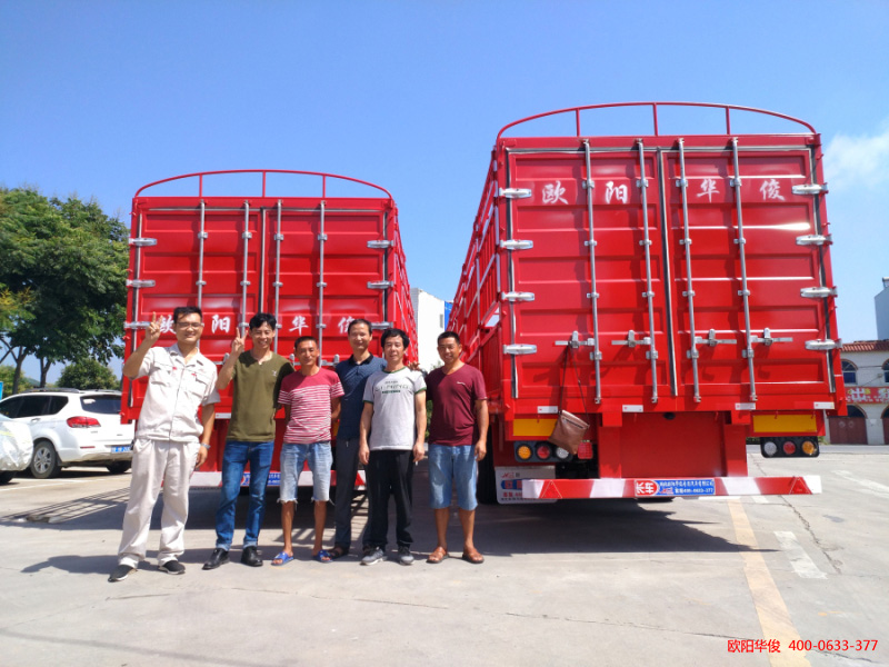歐陽華俊輕量化半掛車,不僅自重輕,而且使用壽命長、耐用性強,歡迎新老客戶咨詢訂購。再次感謝荊門客戶對我們湖北歐陽華俊專用汽車有限公司的支持與信任!祝何、趙、蘇三位老板馬達一響,黃金萬兩,車行萬里歡歡喜喜,人走八方順順當當!