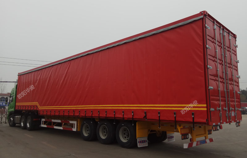 【簡單介紹】:蓬布側簾簾式半掛車也稱蓬布卷簾掀頂半掛車、蓬布集裝箱式半掛車、骨架式蓬布卷簾半掛車等,下面一般配骨架半掛車使用。卷簾車上面的蓬布左右兩側及后面均能打開,簡化工藝,篷布可拆卸,非常方便,便于貨物裝卸,加上篷布重量低,能夠降低車身自重,加強市場的競爭力。