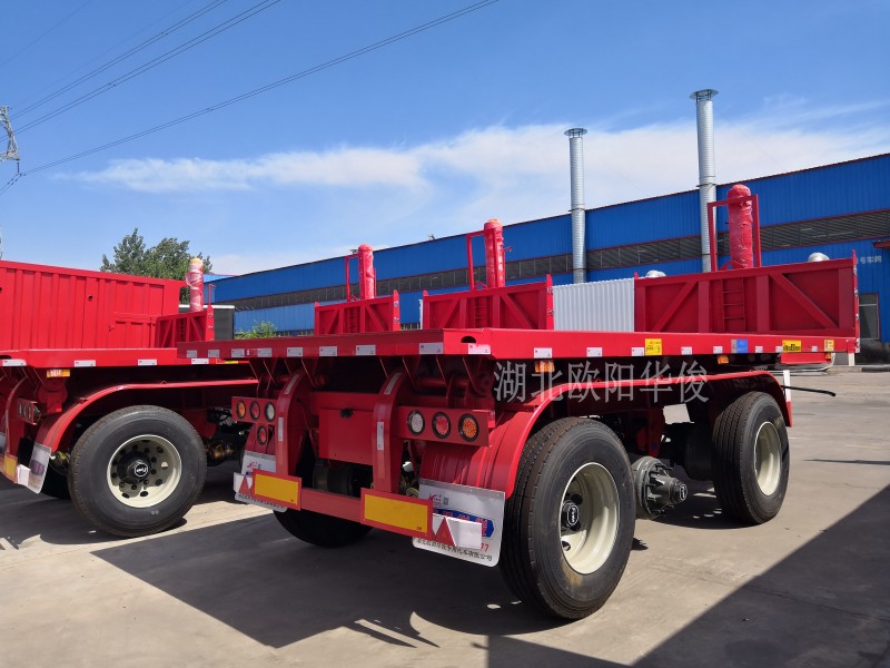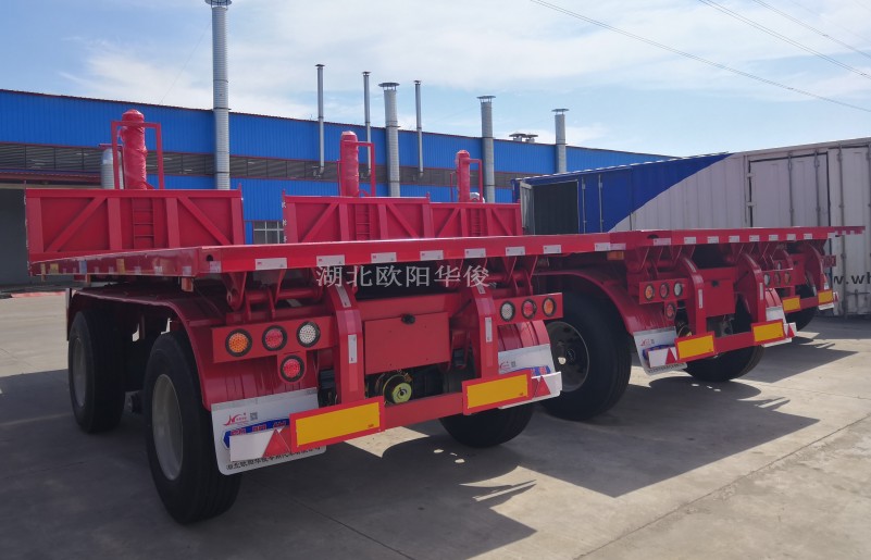 配置:5.0厚高強平板,邊梁140加厚槽鋼,邊4底5,車橋采用廣州華勁車橋16噸車橋16噸剎車,加寬加厚鋼板。取力器、液壓油箱,液壓油配套好。可選裝輪胎鋼圈。