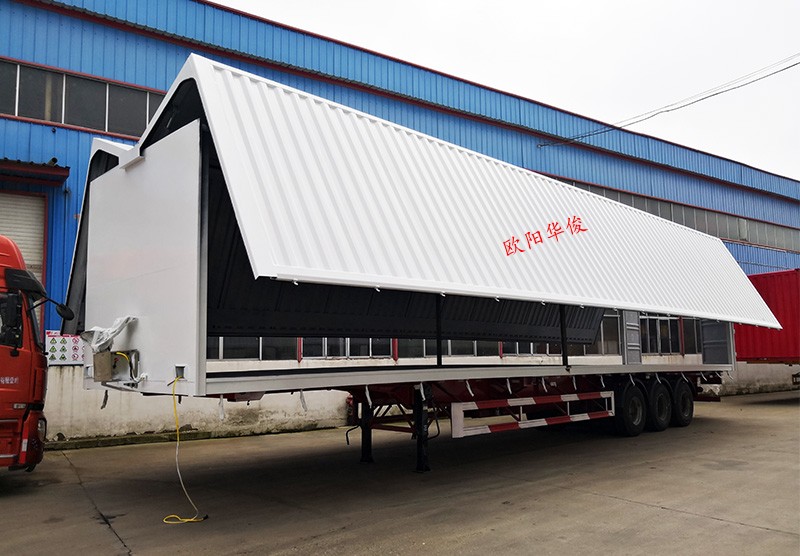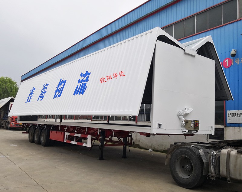 此飛翼上裝為全飛式中開啟采用進(jìn)口動(dòng)力單元,鹽城油頂,車廂采用內(nèi)封鍍鋅板(頂部不封),外掛瓦楞板,頂部加防水篷布,每邊16個(gè)臥環(huán),帶防水槽,底板采用3個(gè)厚紋理防滑鋼板,外表防滑,美觀耐用,貨物運(yùn)輸安全可靠。