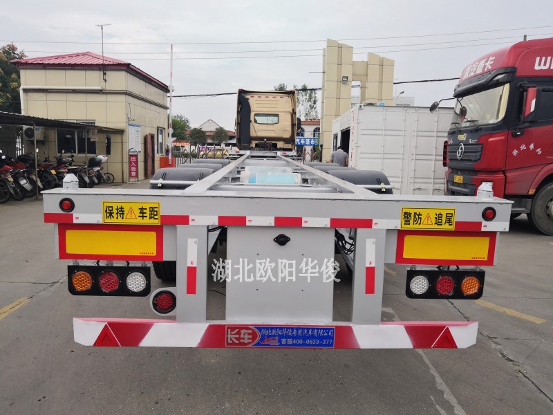 優勢特征:歐陽華俊骨架式半掛車是在同類半掛車成熟結構基礎上,結合歐美優質半掛車設計理念研發的新結構產品;此車運輸種類涵蓋較廣,可用于運輸1臺45英尺、2臺20英尺或1臺20英尺集裝箱,具有低貨臺、輕量化、高可靠性、裝載方便適用性強等特點。
