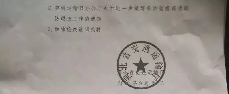 2018年10月,國務院辦公廳印發了《國務院辦公廳關于進一步做好非洲豬瘟防控工作的通知》,在加強畜禽調運監管方面,提出運輸生豬等活畜禽的車輛不再享受鮮活農產品運輸“綠色通道”政策。