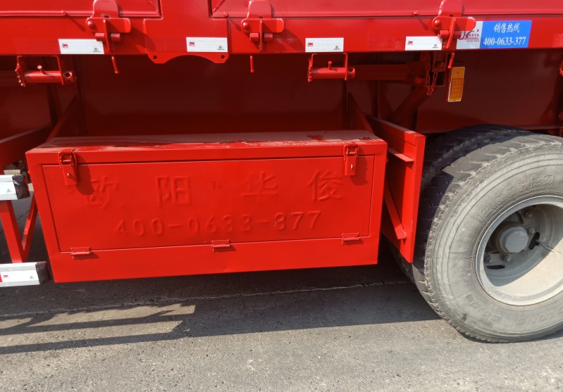 根據拉貨情況,可選裝鋁合金支腿或者普通的28T單動支腿。(備注:普通支腿比鋁合金支腿重100多公斤)用來支撐摘掛后的半掛車前部載荷的裝置