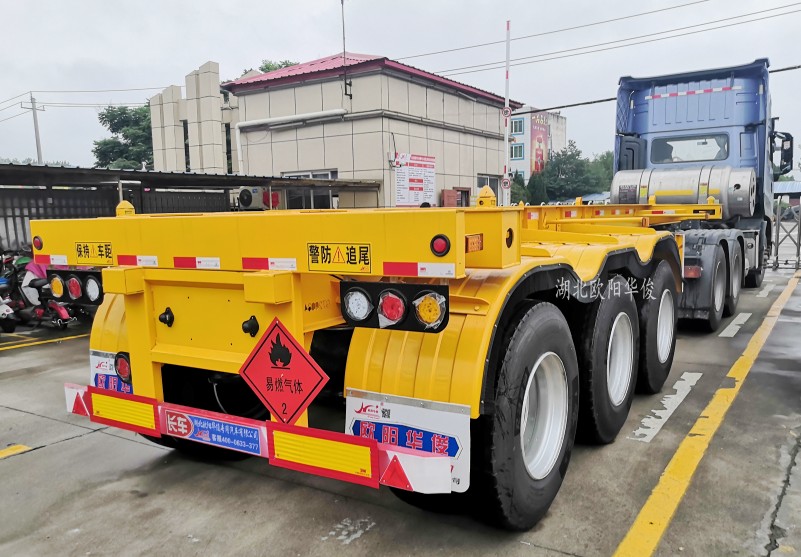 未來新標配:空懸碟剎橋3軸危險品骨架半掛車交付宜昌客戶