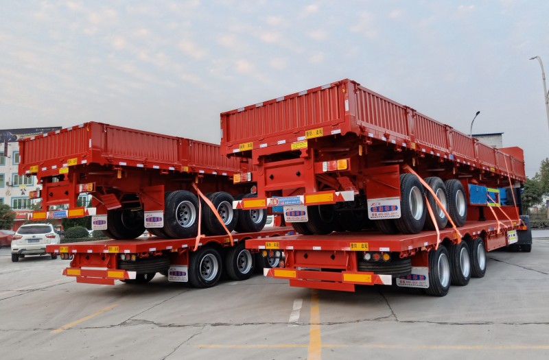 華俊13.75米平板、13米側翻自卸背車發往黃石