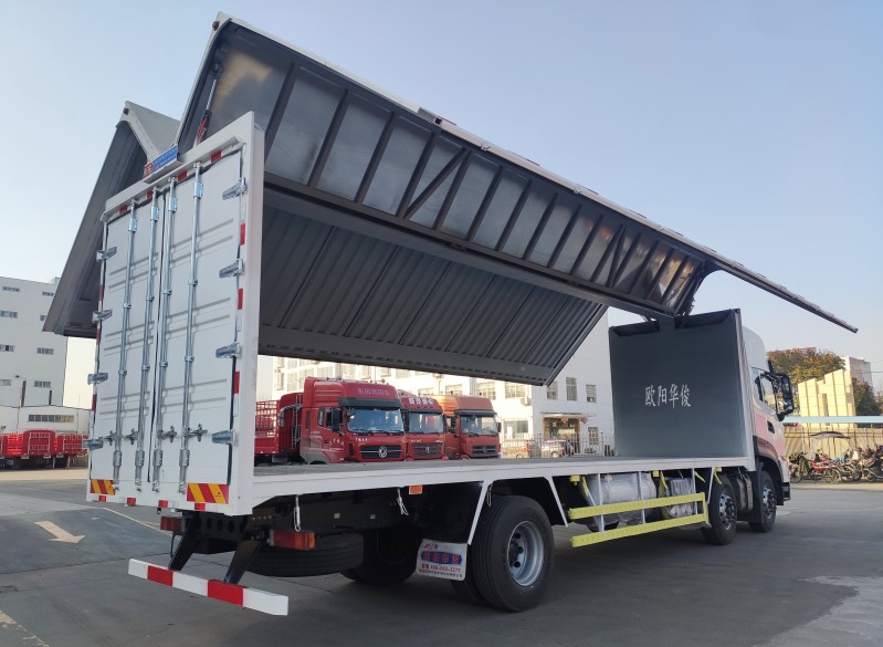 飛翼車廂的大概長度有:載貨車系列的長度尺寸有:6.8米、7.8米、9.6米、9.8米長。飛翼半掛車廂的長度尺寸有:11.5米、12米、12.5米、13米、13.58米、13.75米長,外寬都為2.55米,總離地高不超4米,各種尺寸型號供卡友們選擇使用。