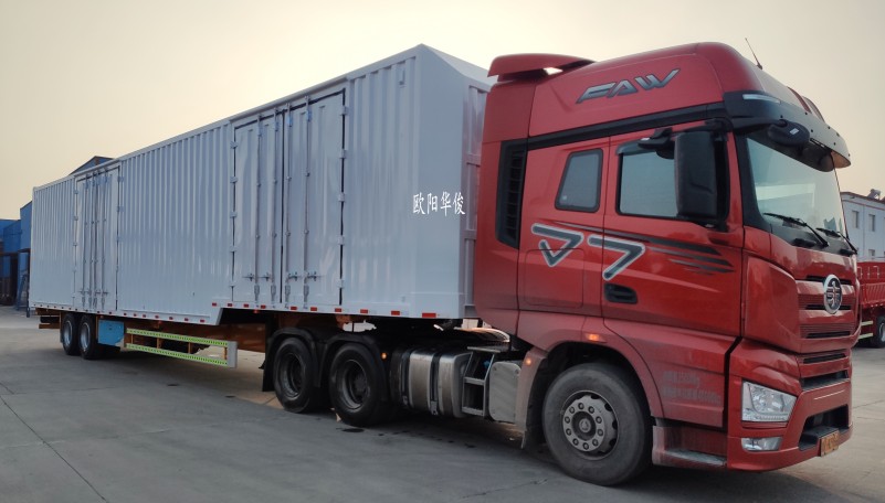 此骨架尺寸為:13.95米長×2.55米寬×1.55米高,車箱尺寸為:15.5米長×2.7米寬×3米高。
