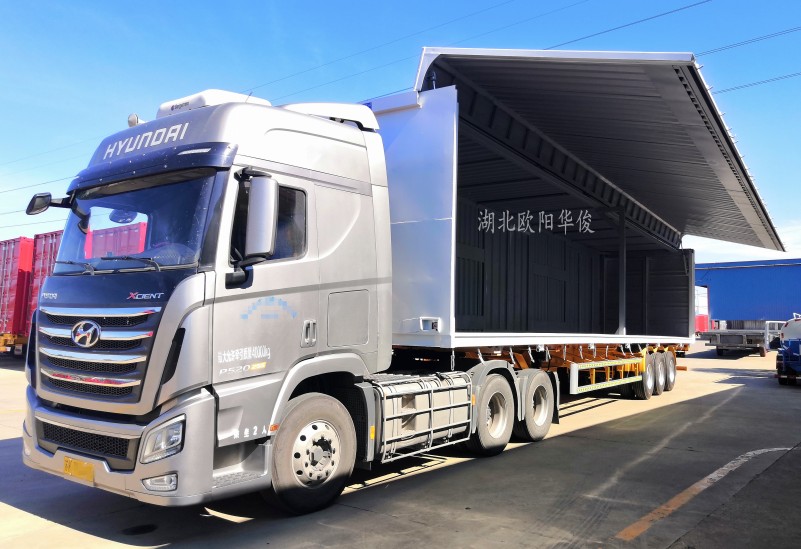 2021年主推車型:各大物流公司喜愛的一款飛翼半掛車,免去蓋篷布的煩惱。隨著我國物流行業(yè)的快速發(fā)展,翼開啟廂式車、飛翼半掛車以其方便快捷的裝卸方式,越來越受到客戶的青睞。下面和小編一起看看歐陽華俊生產(chǎn)的飛翼半掛車吧!