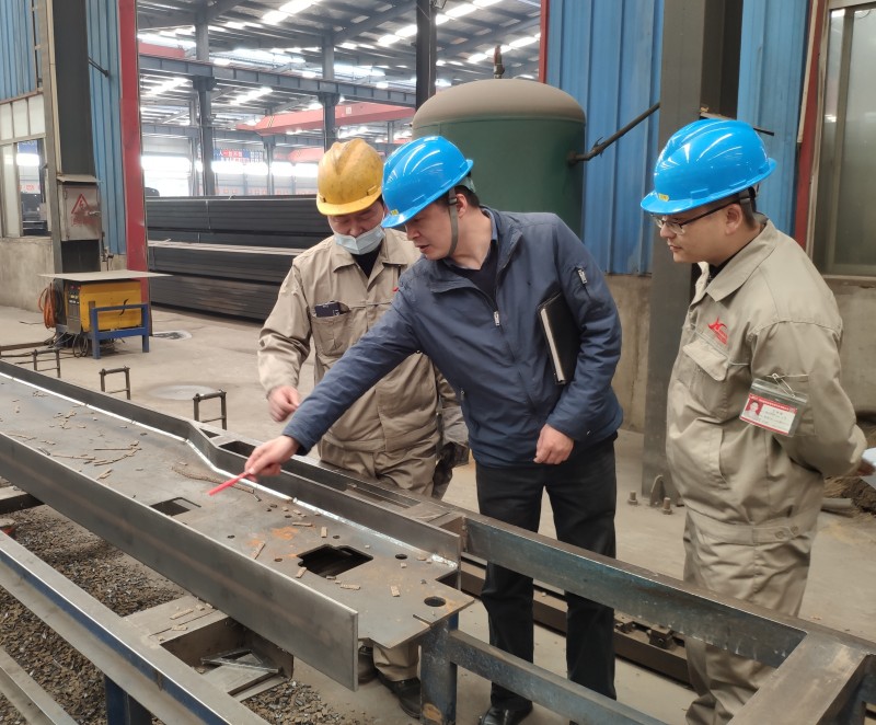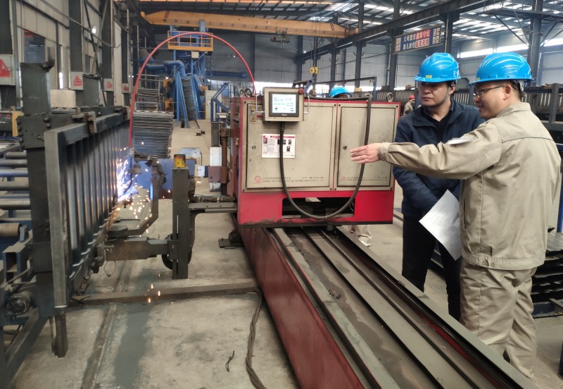 技術(shù)質(zhì)量部楊主任與嚴(yán)教授交流墻板自動焊接工藝