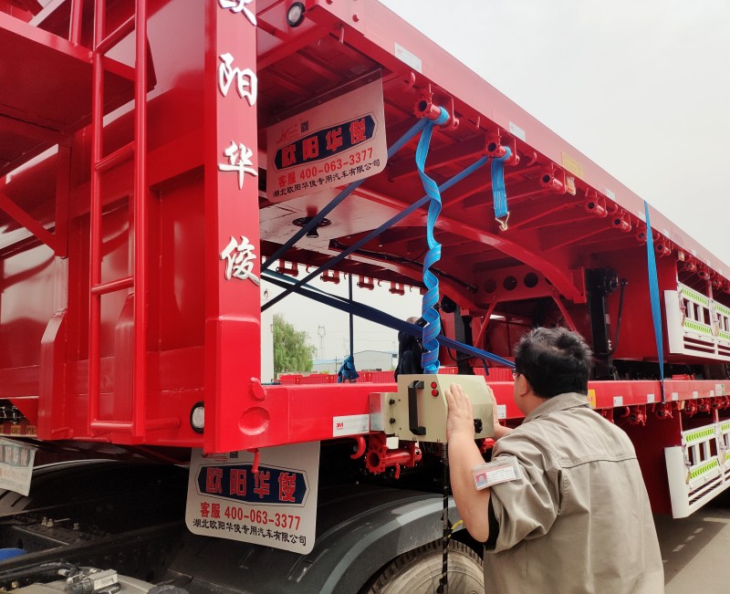 4臺歐陽華俊13米直梁平板半掛車交付咸寧彭總,感謝全國的卡友們一如既往的對歐陽華俊的支持與厚愛。