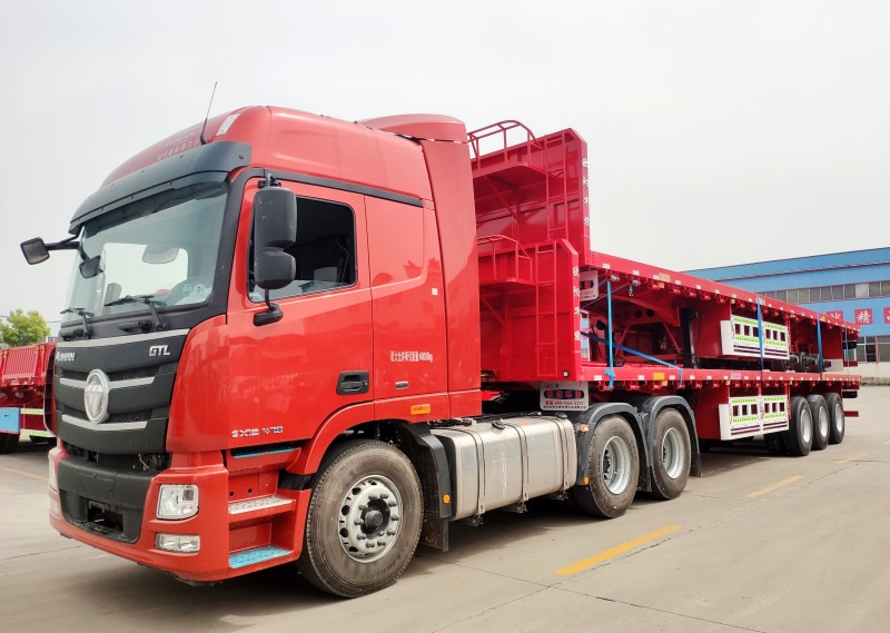 華俊13米平板半掛批量發往咸寧,奔赴財富大道