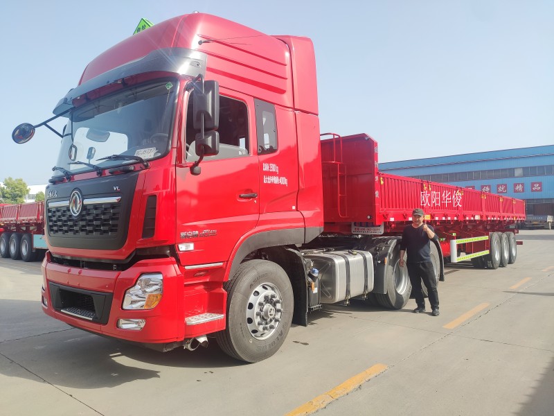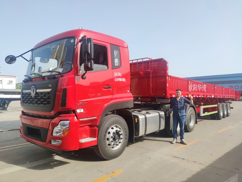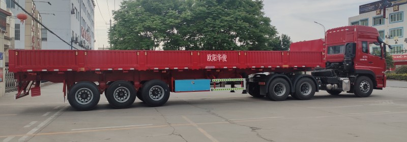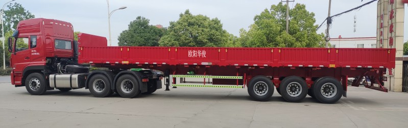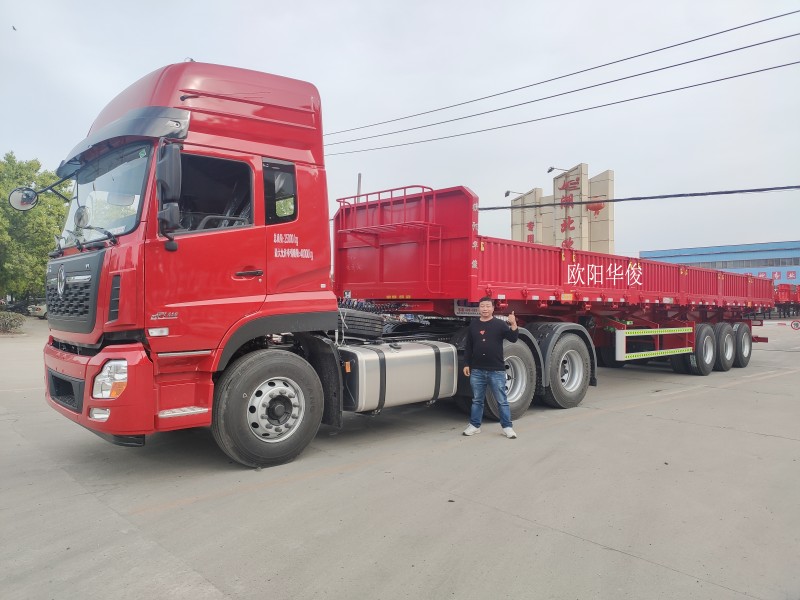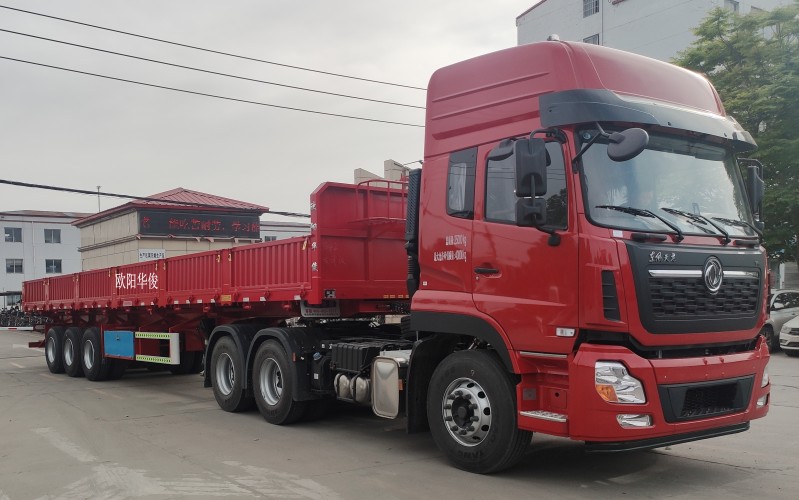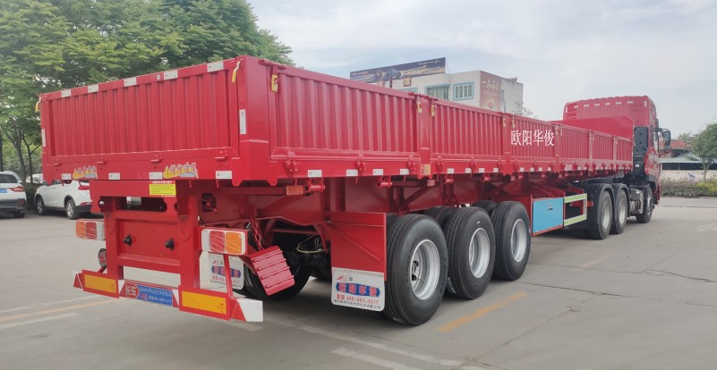 側翻自卸半掛車:可有效地提高裝卸機運輸散裝零散貨物的運輸效率,自卸式半掛車適用于煤炭、礦石、泥沙、建筑物料等散裝零散貨物的運輸。