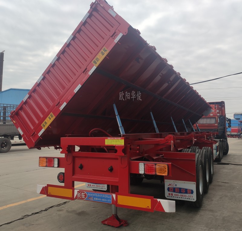 側翻自卸半掛車很關鍵的就是在液壓系統和斜撐上,卡友在購買側翻自卸半掛車的時候一定要注意,大企業的液壓頂才有保障,斜撐要注意廠家焊工以及加固。歐陽華俊是一家具備國家公告資質的專用車生產企業,買半掛車就選大企業,售前有服務,售后有保障!