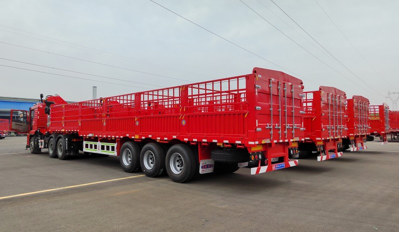 湖北隨車吊何總訂購的4臺13米高低板高欄半掛完工交付,祝馬達一響,黃金萬兩,一路發發發!