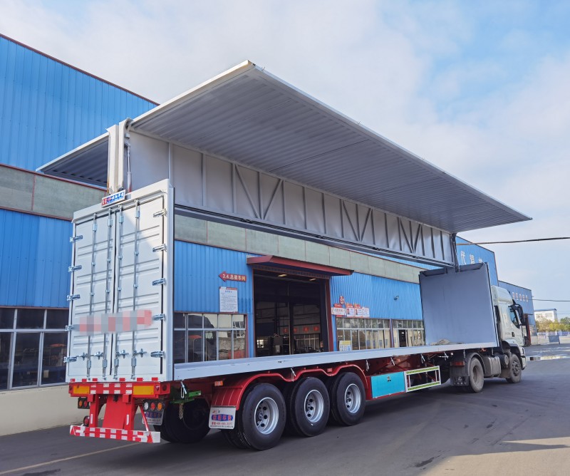 飛翼車全稱翼開啟廂式運(yùn)輸車,飛翼車的車廂兩翼靠動(dòng)力單元驅(qū)動(dòng)能夠展開升起來(lái)。歐陽(yáng)華俊的飛翼車廂設(shè)計(jì)美觀,貨物運(yùn)輸安全可靠。感謝各位老板選擇湖北歐陽(yáng)華俊專用汽車有限公司,祝大家提車大吉,生意興隆!好品質(zhì),行天下;讓我們攜手合作,共創(chuàng)輝煌的明天~ ~ 13.75米整體式高低板飛翼半掛